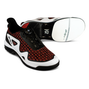 Take your game to the next level with the New KR Strikeforce “The Perfect Collection” TPC Gladiator Men’s High-Performance Bowling Shoes. The Gladiator comes with KR FreeLock Dial Lacing System which is an advanced lacing technology which gives you a secure, consistent fit. The upper is made of a flexible mesh and microfiber blend. New innovative TRI-Sole outsole technology with interchangeable slide pad and heel keeps your slide under control for ultimate shot making. Biomechanically engineered for ultimate comfort and performance with a TPU molded heel stabilizer for added stability and enhanced fit. Included inside both shoes are New Ortholite® High Rebound molded insoles for prolonged comfort and durability. Minimal break in period required. PBA Registered Product. Included parts on slide foot shoe: Genuine Clarino® #8 white microfiber slide pad and #5 graduated rubber heel. Included parts on push foot: T02 rubber push-off sole (fixed) and #2 shark tooth heel. Included in the box are the #10 Grey felt slide pad, #6 Perforated white microfiber slide pad and #7 Black leather heel. Other extras included in the box are TPC branded Dura-Flex shoe covers, a Large TPC branded valuables pouch, TPC Bag tag and TPC Welcome Letter. Available in Right Hand Medium sizes 8-12, 13.