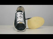 These Right Handed Classic White bowling shoes are made with US top grain leather and they have a buckskin slide sole on the left foot and a smooth rubber traction sole with a leather tip on the right foot. This design is made to help the bowlers feet feel cool and comfy. Don't miss out on these quality made shoes that also have removable antibacterial footbeds.